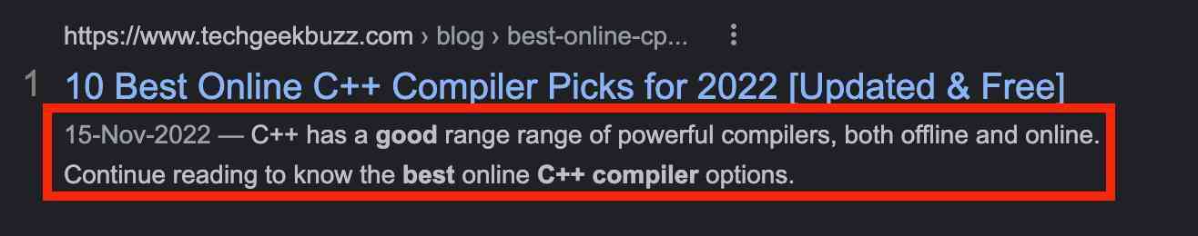 It is another element providing insights into the web page content. It is a summary of the content explaining what users will get to know on the web page. Consider the meta description as a pitch to convince visitors to click on the title tag and ensure that they get the information they are looking for.